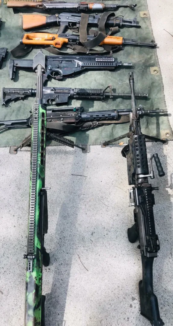Al realizar una inspección, a los indiciados les fueron aseguradas entre sus pertenencias, ocho armas de distintos calibres, 903 cartuchos útiles y cargadores.