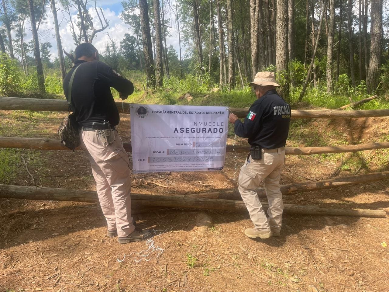 En atención a las acciones encaminadas a la protección del medio ambiente y la fauna, personal de la institución conoció sobre una denuncia presentada por la Procuraduría de Protección al Ambiente del Estado de Michoacán, que advertía la posible comisión de un delito en un predio ubicado en la localidad de Cuanajo, en el referido municipio, por lo que recabó datos de prueba que posteriormente fueron presentados para solicitar la respectiva orden de cateo, misma que fue obsequiada.