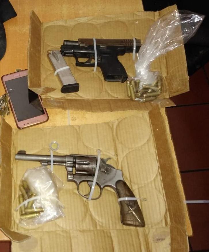 En el trayecto, dicho vehículo se impactó contra otras unidades, por lo que los implicados descendieron y comenzaron a correr, siendo detenidos momentos después y asegurándoles dos armas de fuego y diversos cartuchos útiles.
