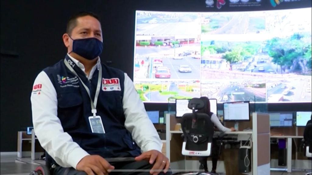 Morelia, Michoacán, a 9 de febrero de 2021.- Su nombre es Román Reyes Mendoza, un hombre con más de una década de servicio en el Centro Estatal de Comando, Comunicaciones, Cómputo, Control, Coordinación e Inteligencia (C5i), quien pese a vivir con una discapacidad, sigue dando pasos firmes como operador, funciones que ejecuta a favor de las y los michoacanos.