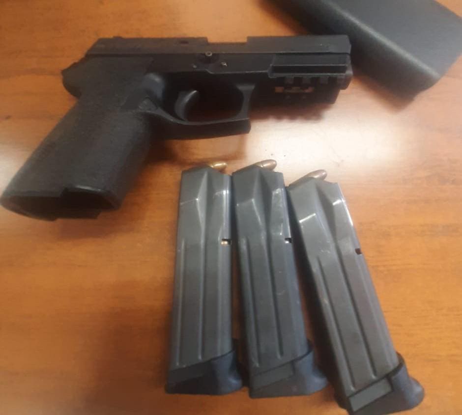 Durante las tareas de revisión, el personal policial localizó entre las pertenencias del ahora detenido el arma de fuego, los cargadores y cartuchos útiles, procediendo a su aseguramiento y puesta a disposición de la autoridad competente, a efecto de llevar a cabo las actuaciones correspondientes.