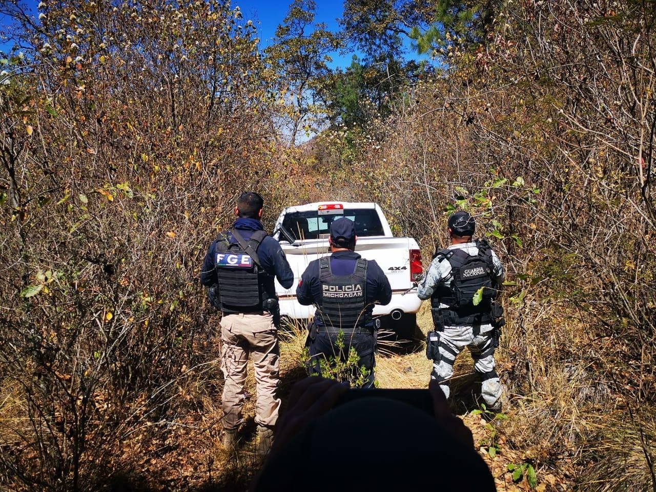 Oficiales de la Policía Michoacán en coordinación con personal de las citadas instituciones de seguridad realizaban recorridos para la disuasión del delito sobre zonas boscosas de esta demarcación, cuando localizaron sobre una brecha una camioneta de la marca Dodge, que se encontraba en aparente estado de abandono, por lo que procedieron a inspeccionarla.