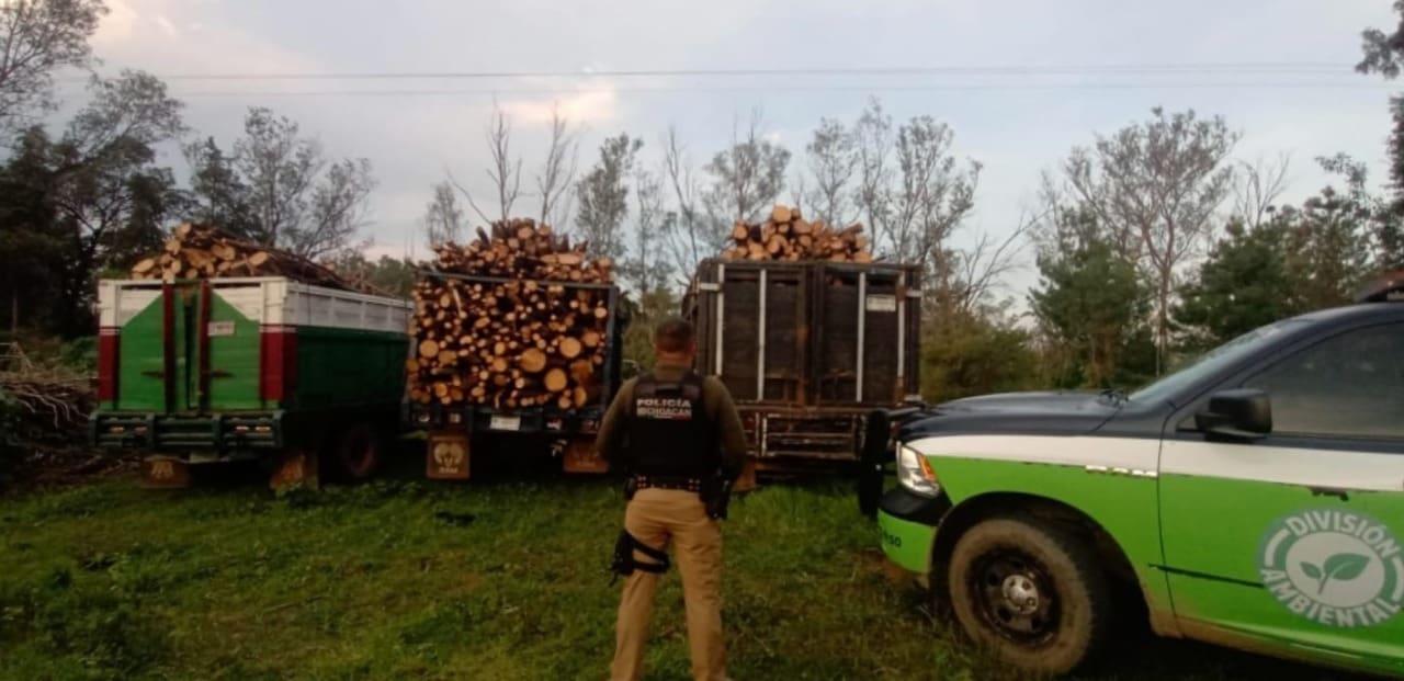 Al realizar recorridos de vigilancia sobre las localidades Puerto La Sosa y Las Palomas, pertenecientes a la capital michoacana, los agentes en coordinación con personal de la Comisión Forestal del Estado de Michoacán (COFOM), visualizaron tres unidades de la marca Ford, con cargamento de la materia prima antes mencionada.