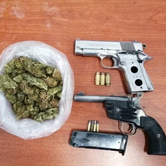 Tras las acciones efectuadas, en la colonia Madero se logró detener a Jorge M., y Adrián M., quienes portaban dos armas de fuego calibres .22 y .45 mm., respectivamente; de igual forma, les fue decomisada una bolsa con la mencionada droga.
