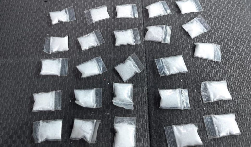 Uruapan, Michoacán.- En patrullaje de vigilancia, oficiales de la Secretaría de Seguridad Pública (SSP), aseguraron a dos personas del sexo masculino, en posesión de una sustancia granulosa con las características propias de la metanfetamina; hecho ocurrido en esta ciudad.