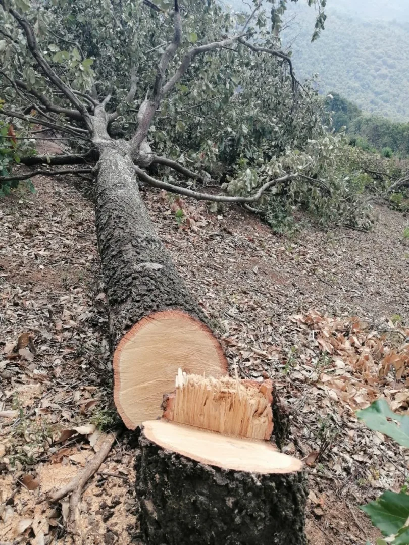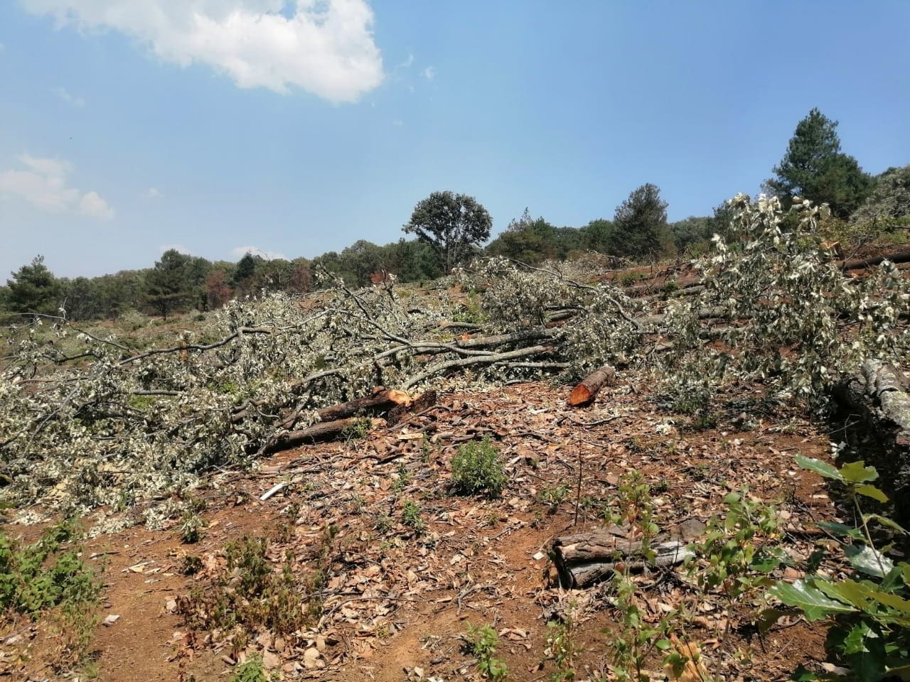 Morelia, Michoacán.- En seguimiento a las labores implementadas para combatir actos que atenten contra los recursos naturales del Estado, elementos de la Secretaría de Seguridad Pública (SSP), ubicaron un predio afectado por la tala clandestina en la localidad Cuanajillo el Grande, de este municipio.