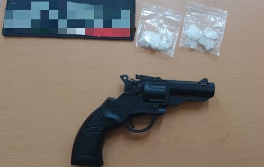 Zamora, Michoacán, 24 de julio del 2022.- Como resultado de las acciones desplegadas que forman parte del operativo Blindaje Zamora, los elementos de la Secretaría de Seguridad Pública (SSP), aseguraron a dos personas en posesión de una réplica de arma de fuego y dos envoltorios con droga.