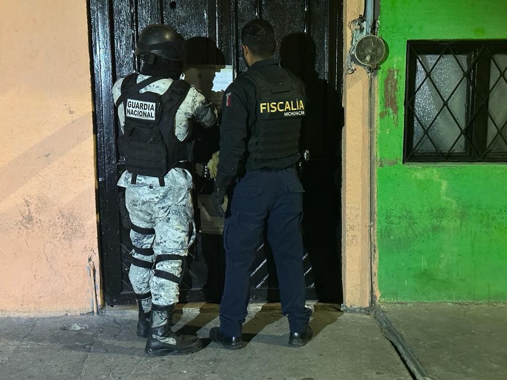 Morelia, Michoacán, a 1 de mayo de 2023.- En cateo realizado en un inmueble en la colonia Jacarandas, personal de la Fiscalía General del Estado de Michoacán (FGE), con apoyo de la Unidad Canina (K9) y la Guardia Nacional (GN), detuvo a una mujer y aseguró un inmueble por su posible relación en conductas ilícitas.