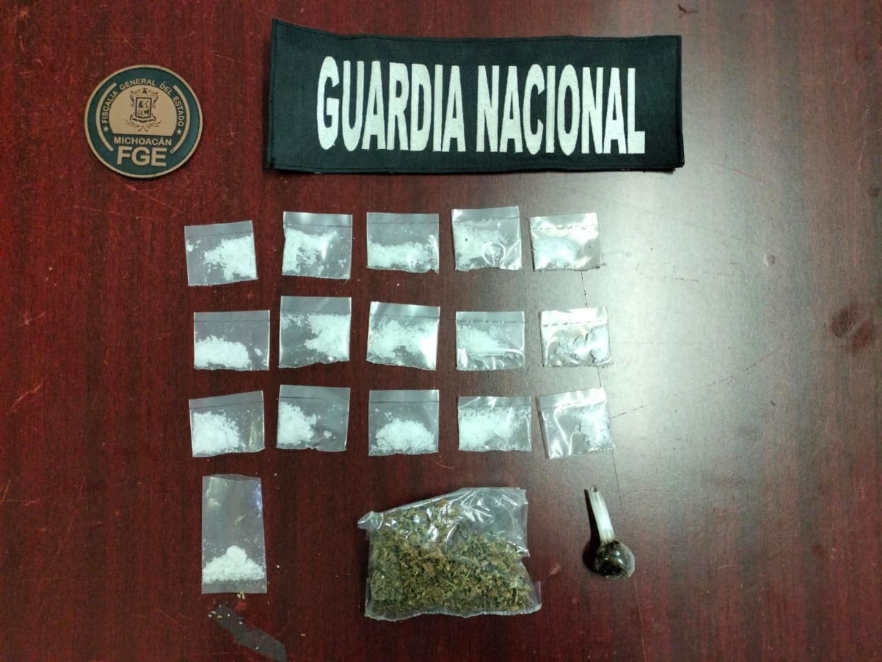 Durante el cumplimiento del mandato judicial, acudieron elementos de la Policía de Alto Impacto (PDI), quienes con apoyo de la Guardia Nacional (GN, aseguraron 17 bolsas de plástico que contenían una sustancia granulosa con las características de metanfetamina y vegetal verde, al parecer marihuana.