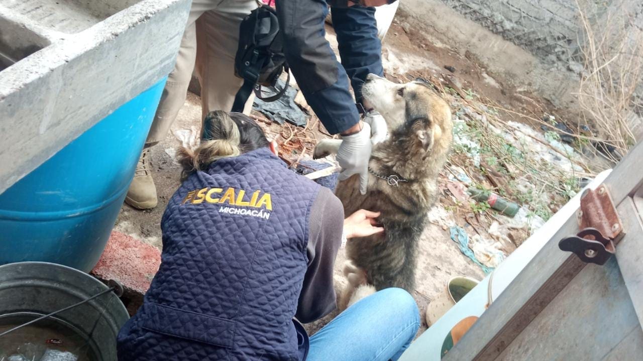Morelia, Michoacán, a 18 de junio de 2022.- Durante un cateo realizado en el municipio de Tarímbaro, personal de la Fiscalía General del Estado de Michoacán (FGE) aseguró a un ejemplar canino que se encontraba en condiciones de maltrato animal.