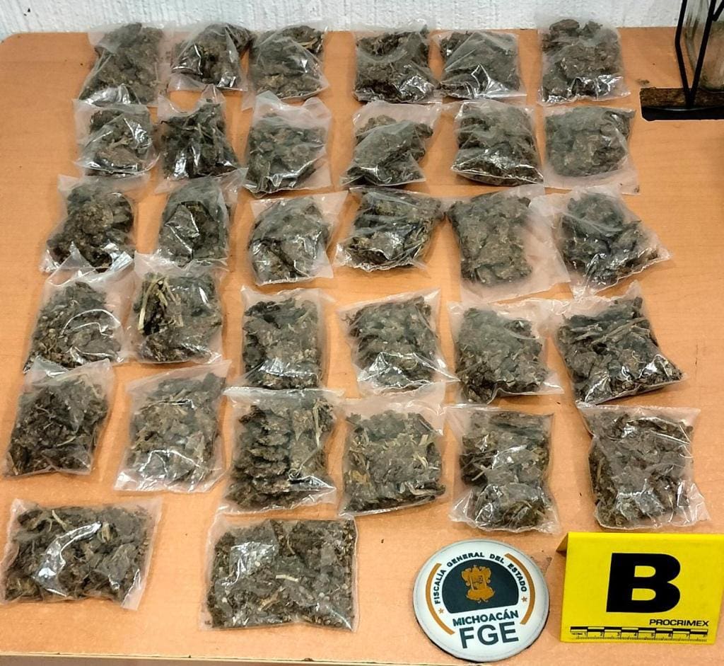 Fue así que durante el operativo, agentes de esta institución, con apoyo de personal castrense y de la GN localizó 32 envoltorios de plástico que en su interior contenían una sustancia con apariencia y hierba verde, al parecer marihuana, ocho pipas de cristal, y una báscula.