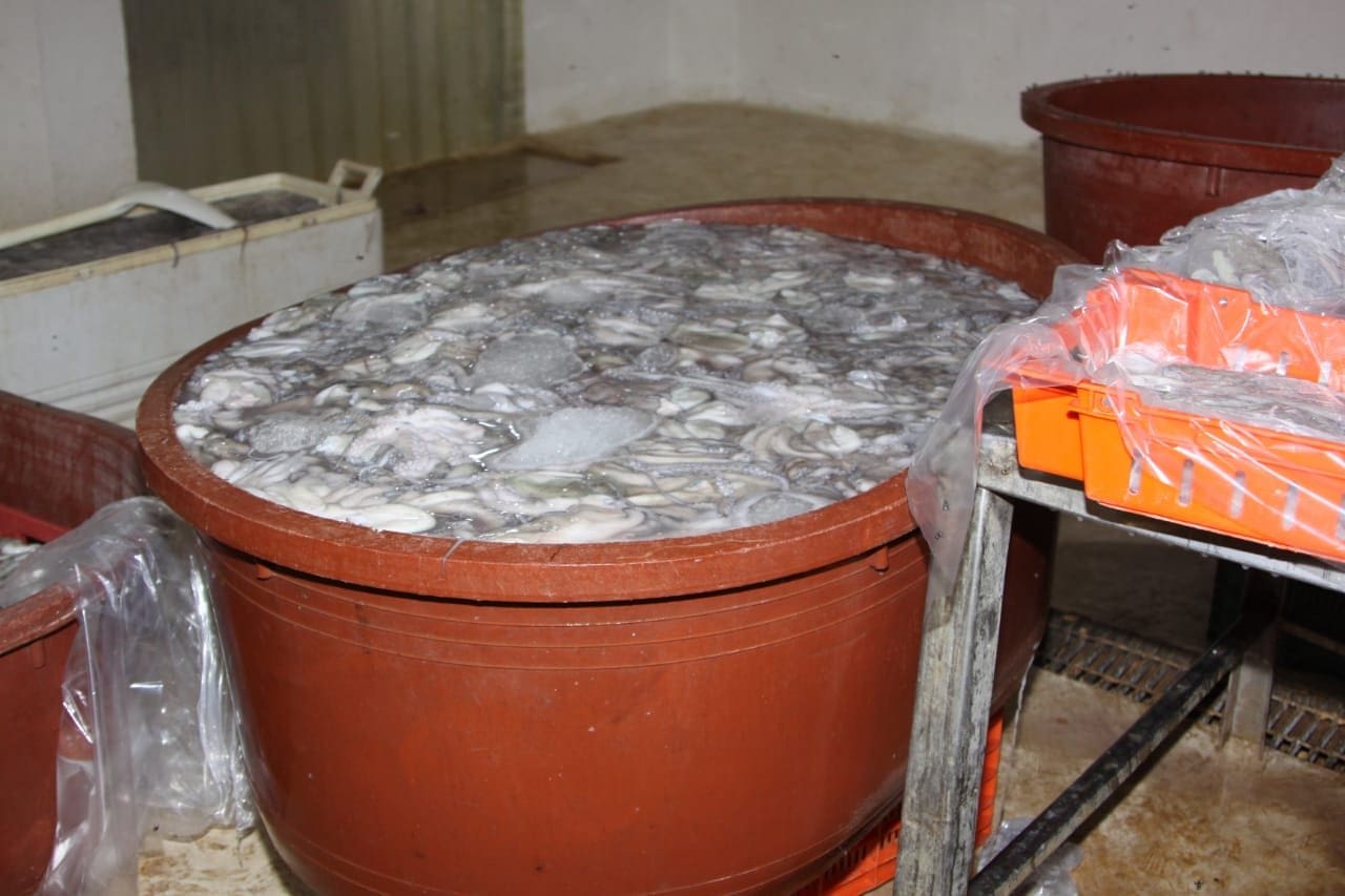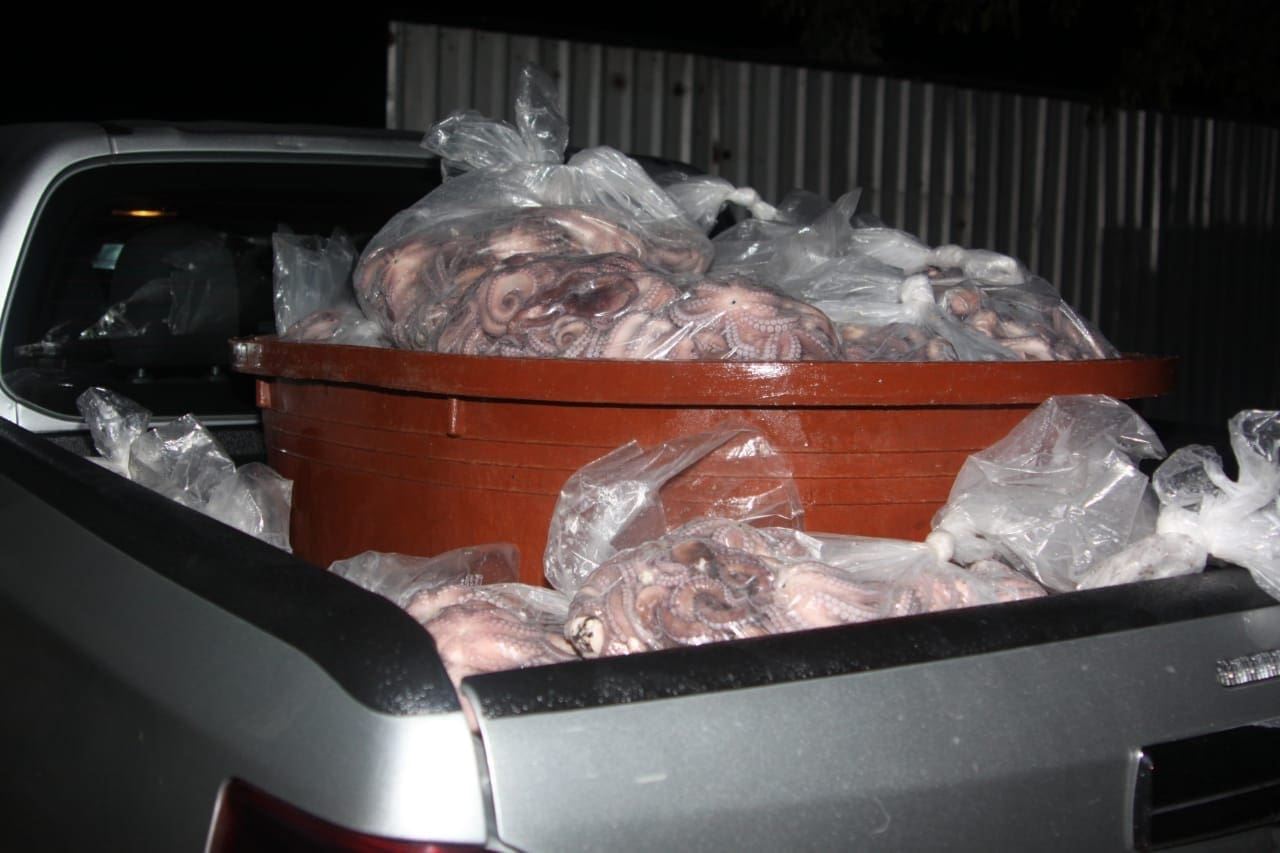 Como resultado de la técnica de investigación, se detuvo a Isabel “N”, Josué “N” y María “N”, a quienes se les aseguraron aproximadamente 896 kilogramos de pulpo fresco, seis mil 421 kilogramos de pulpo cocido, cuatro tortugas pequeñas, una cría de cocodrilo; asimismo 115 kilogramos de cola de langosta, 35 kilogramos de tiburón, tres kilos de caracol negro, cuatro kilos de caracol blanco, dos kilos de pepino de mar, siete básculas y diversos objetos.