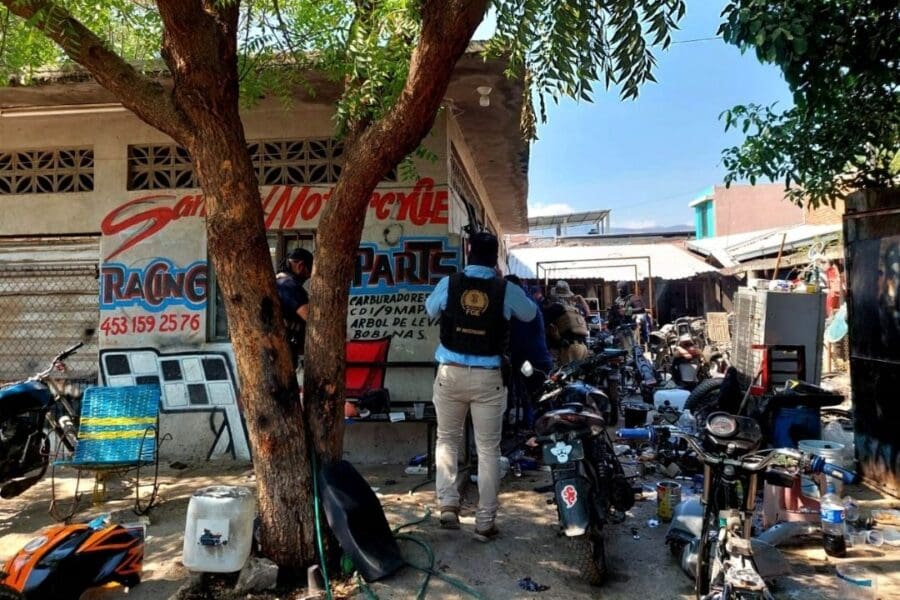 Durante las diligencia, personal de la Policía de Investigación (PDI) con apoyo de la Policía Municipal, se trasladó al inmueble en referencia, habilitado como taller mecánico; ahí localizó dos motocicletas que al ser inspeccionadas arrojaron reporte de robo activo y alteraciones en sus medios de identificación, respectivamente.