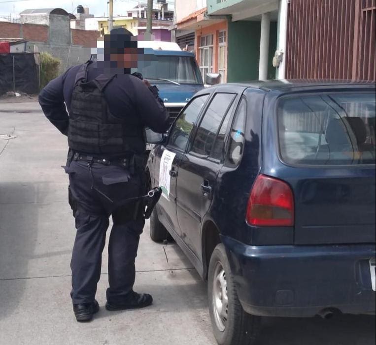 En otro hecho operativo, los efectivos localizaron un vehículo de la marca Volkswagen, línea Pointer con reporte de robo, sobre la calle Teniente Coronel Franco Escalante.