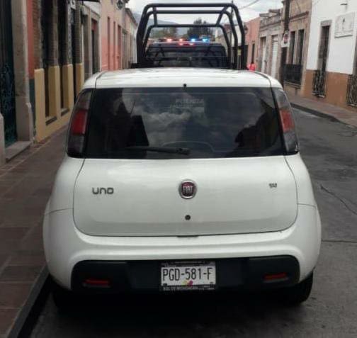 La primera acción tuvo lugar sobre la calle Galeana, donde personal de la Policía Michoacán ubicó una unidad de la marca FIAT, la cual al verificar sus antecedentes, se confirmó que tiene reporte de robo.
