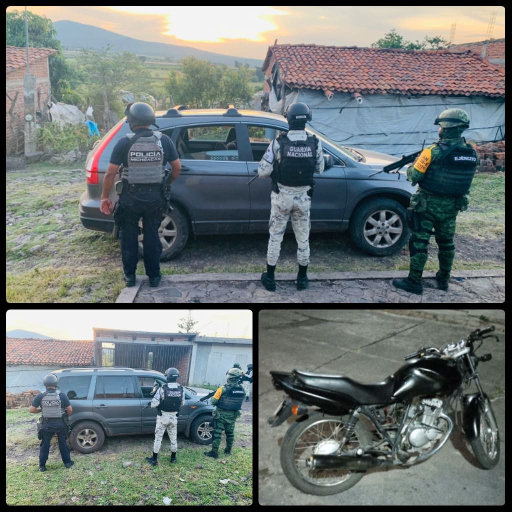 Durante un primer hecho en la localidad de La Ladera, perteneciente a Zamora, el personal policial, del Ejército Mexicano y de la GN, localizaron dos camionetas de la marca Honda, las cuales al parecer, se encontraban en aparente estado de abandono.
