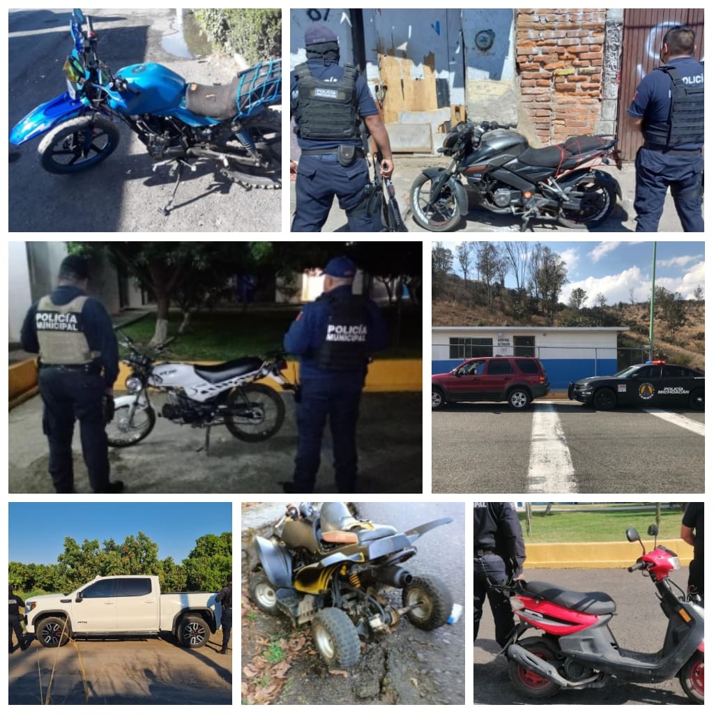 A través del reforzamiento a las labores de seguridad, los agentes de la Policía Michoacán en los municipios de Morelia, Turicato, Uruapan, Vista Hermosa y Ziracuaretiro, recuperaron las siguientes unidades: dos motocicletas de la marca Yamaha, una Vento y una Honda, tres vehículos tipo sedan de las marcas Honda, Ford, y Chevrolet, así como una camioneta Ford.