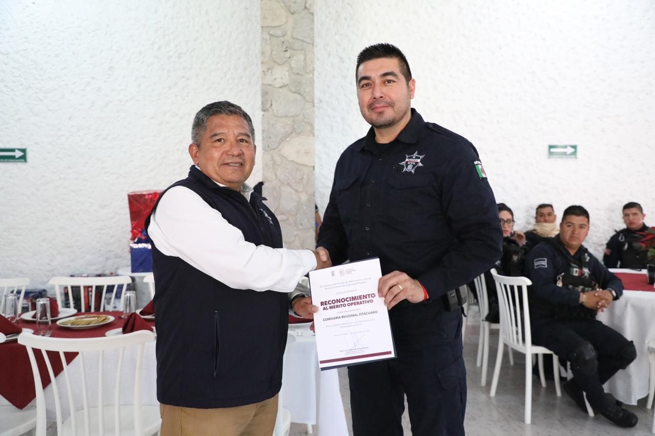 • El Maestro José Alfredo Ortega Reyes, también inspeccionó las bases de seguridad de Ojo de Agua de Bucio, y entregó el Mérito de Operatividad a la región Zitácuaro.