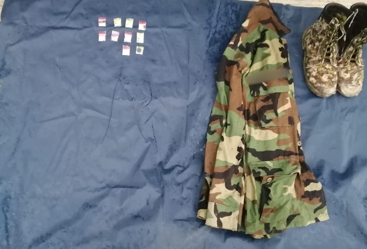 Durante las tareas de revisión, los oficiales localizaron entre las pertenencias del ahora detenido 10 envoltorios con la citada droga, así como ropa táctica, procediendo a su aseguramiento y puesta a disposición de la autoridad competente, a efecto de realizar las diligencias respectivas.