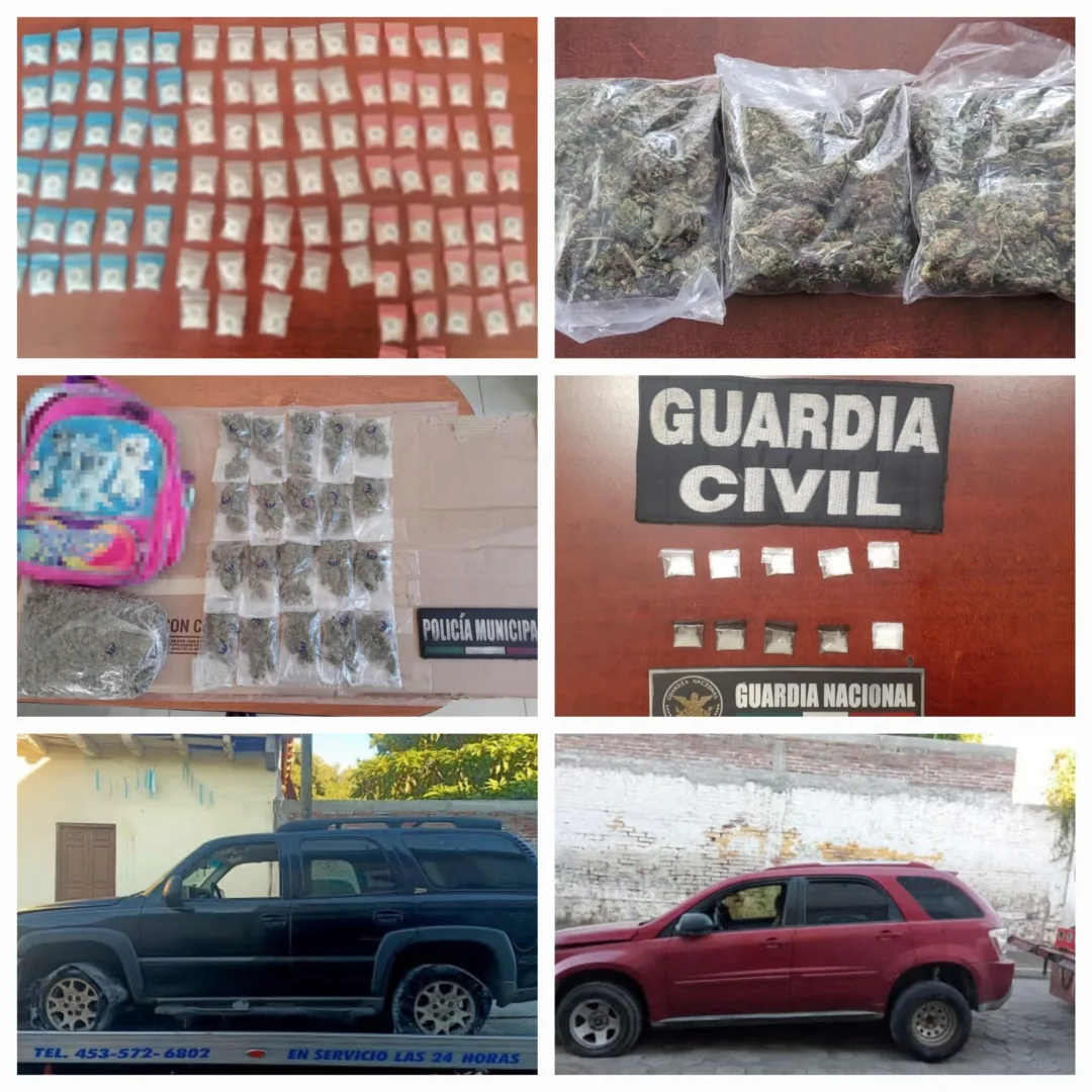 Tanto los detenidos como las sustancias ilícitas y los vehículos recuperados fueron puestos a disposición de las autoridades competentes para realizar las diligencias correspondientes.