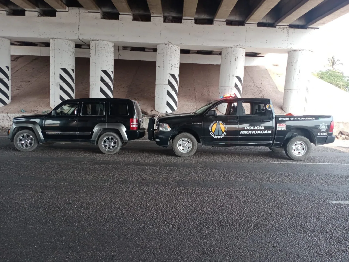 Durante labores preventivas efectuadas en la autopista Siglo XXI a la altura del kilómetro 308+800, agentes de la División Estatal de Caminos de la Policía Michoacán aseguraron al implicado, quien tripulaba una unidad de la marca Jeep con reporte de robo.