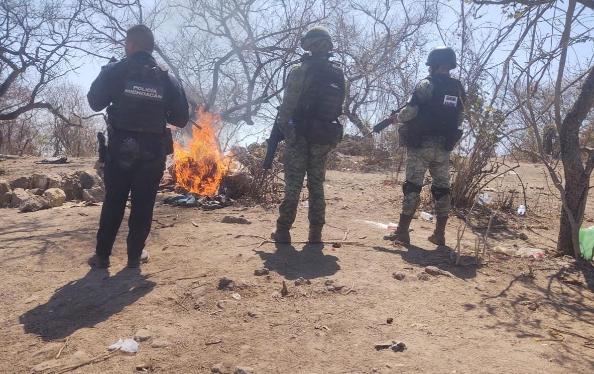 También, derivado de tareas en zonas serranas, los uniformados localizaron cuatro campamentos clandestinos, tres de éstos, ubicados en el municipio de San Lucas y el otro en Huetamo, los cuales fueron destruidos.