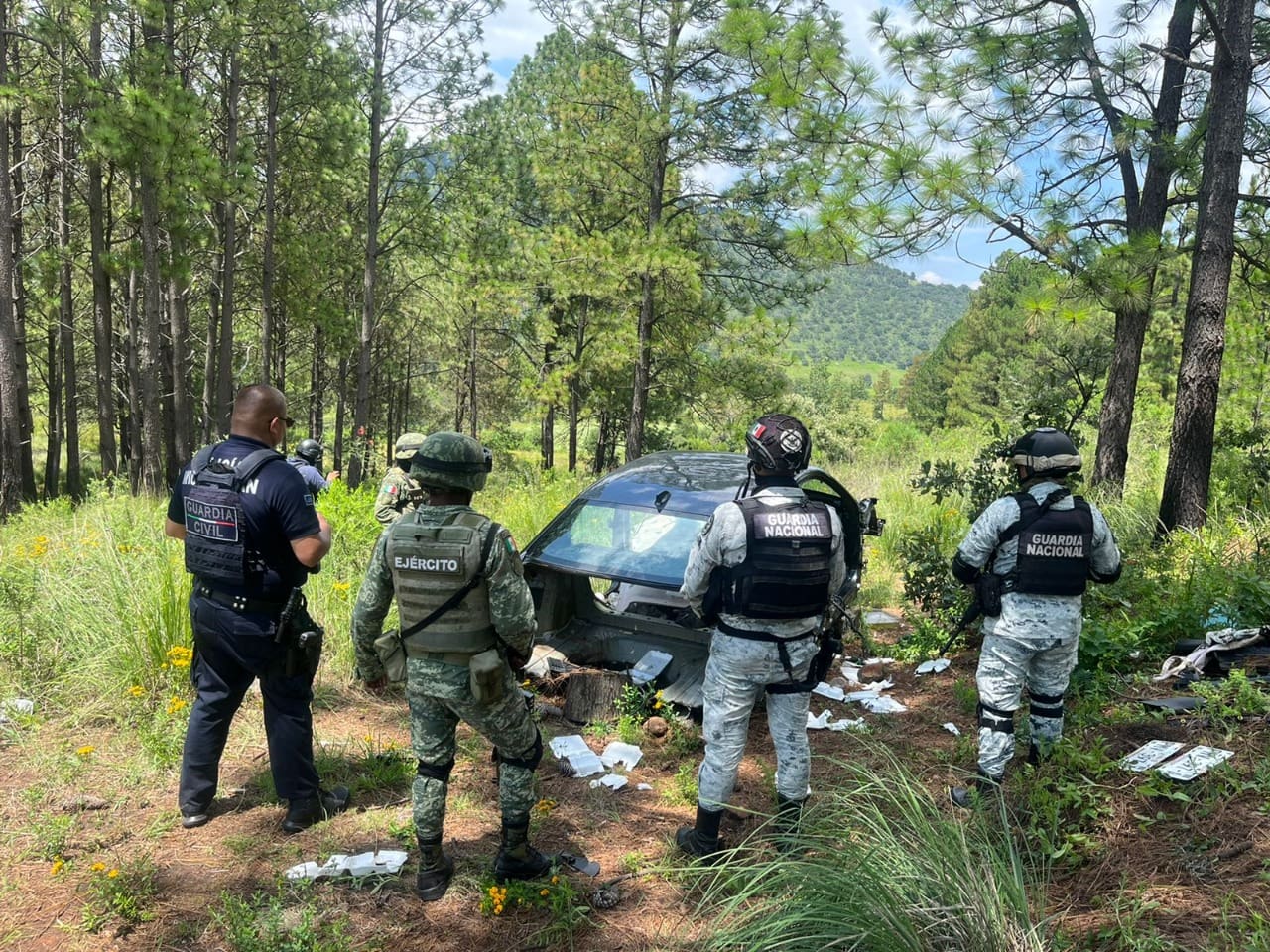 También, localizaron un vehículo de la marca Honda en aparente estado de abandono y con señas de desvalijamiento; mismo que tras verificar sus antecedentes, se corroboró que contaba con reporte de robo vigente; motivo por el cual fue asegurado y puesto a disposición de la autoridad competente.