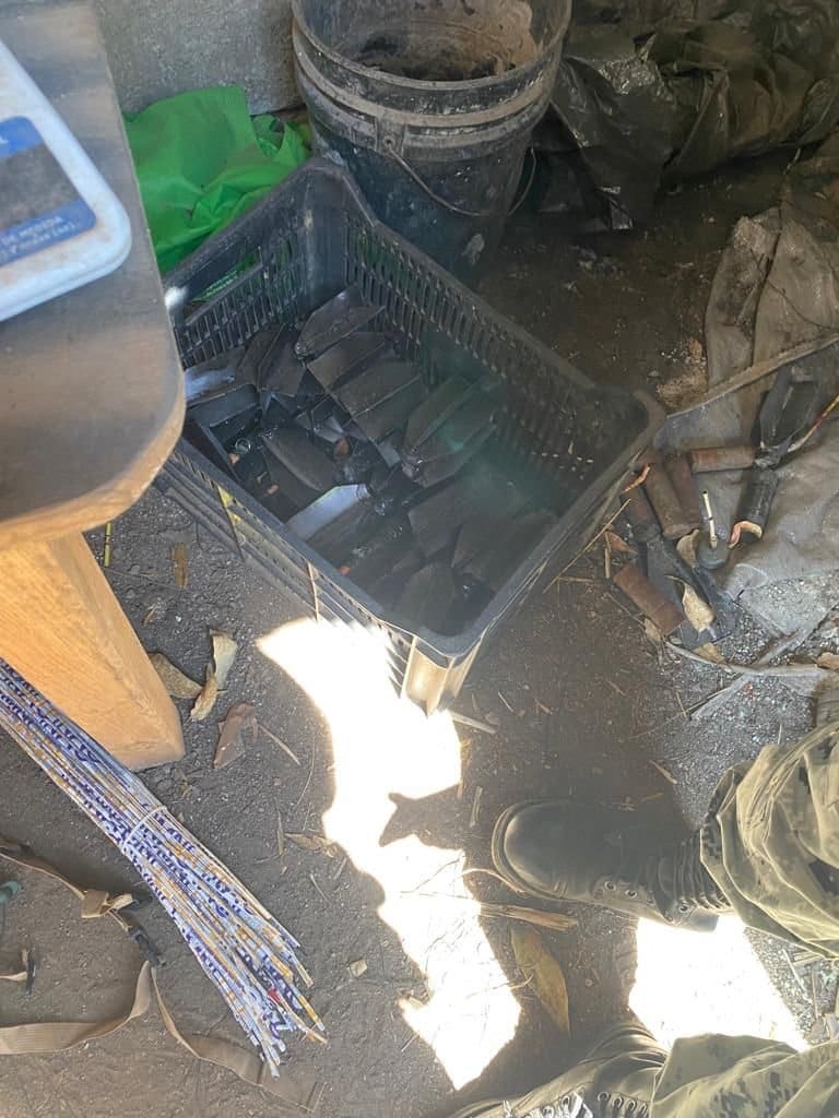 Marcos Castellanos, Michoacán, 2 de marzo del 2022.- En un operativo conjunto, los elementos de la Secretaría de Seguridad Pública (SSP), en coordinación con la Guardia Nacional (GN), y la Fiscalía General del Estado (FGE), aseguraron aproximadamente 20 explosivos y alerones artesanales para drones.
