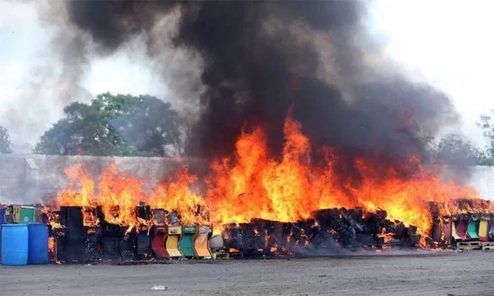En Morelia FGR incinera más de 700 kilos y mil litros de diversas drogas, así como máquinas tragamonedas.