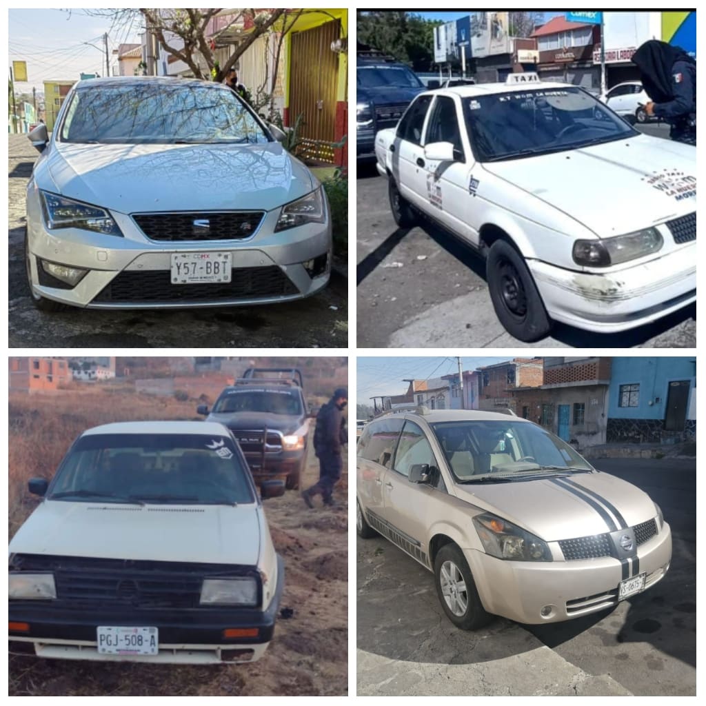 Durante distintas labores operativas para prevenir el delito en la capital michoacana por parte de los agentes de la Policía Michoacán, se efectuó el aseguramiento de cuatro unidades de las marcas Volkswagen, Seat y dos Nissan, de las cuales dos presentan reporte de robo y dos más cuentan con alteraciones.