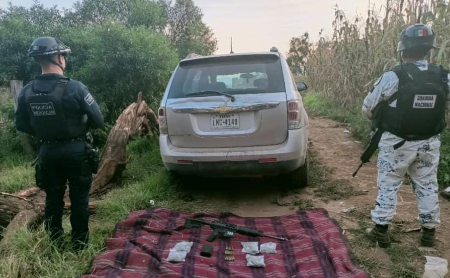 En operativo interinstitucional, se aseguró un arma de fuego, droga y dos vehículos