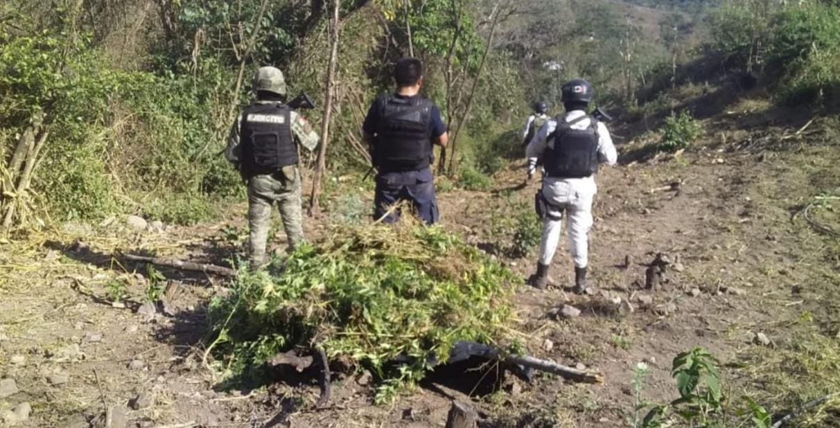 En operativo interinstitucional, se localiza y destruye campamento y plantío de marihuana en Chinicuila