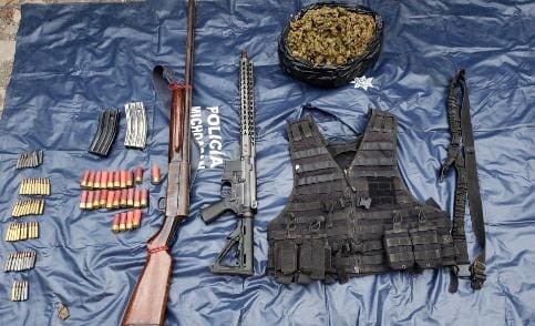 En persecución, detienen SSP y FGE a dos con armas, cartuchos y un vehículo con reporte de robo