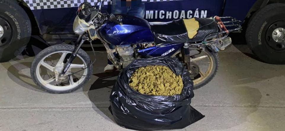 En Tepalcatepec, SSP, SEDENA y GN decomisan 9.5 kilos de marihuana y un vehículo; hay un detenido