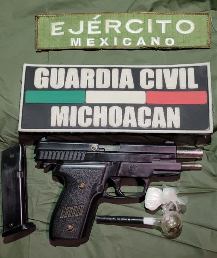 En Uruapan, Guardia Civil detiene a uno con réplica de arma y droga