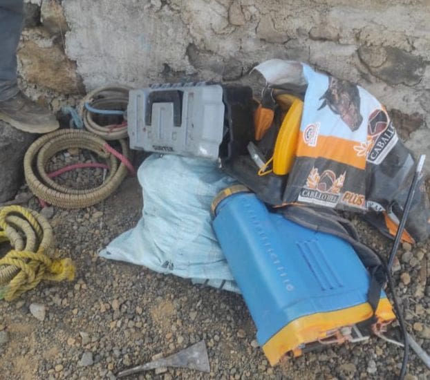 Al llegar, visualizaron al ahora implicado y corroboraron que se encontraba robando varios objetos, entre ellos: un generador eléctrico, sierras circulares, un aspersor manual y pretales para toros. Por lo anterior, fue asegurado y puesto a disposición de la autoridad correspondiente, quien continuará con las indagatorias de Ley.
