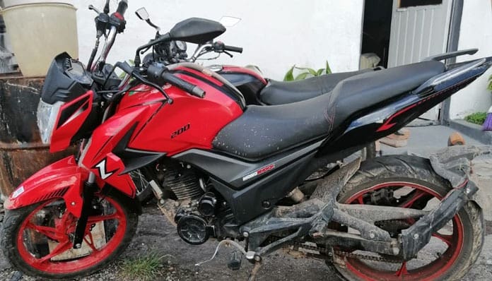 Zitácuaro, Mich.- Durante recorridos de prevención del delito y vigilancia sobre la calle Benedicto López entre las calles Ignacio López Rayón e Ignacio Allende elementos de la Policía Michoacán Unidad Zitácuaro, visualizaron una motocicleta sin placas y dos masculinos, abordo a quienes les marcaron el alto.
