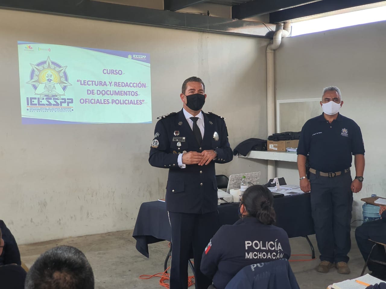 Morelia, Michoacán.-El Instituto Estatal de Estudios Superiores en Seguridad y Profesionalización Policial del Estado de Michoacán (IEESSPP), dio inicio al Curso de Lectura y Redacción de Documentos Oficiales Policiales a los funcionarios encargados de hacer cumplir la ley que se integrarán a las filas de la Policía Municipal de Zitácuaro.