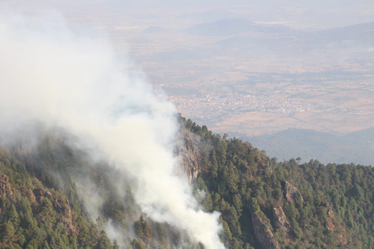 “Se acaba de hacer un primer recorrido para revisar y poder plantear una estrategia de ataque al incendio, el fuego se encuentra en una zona rocosa, completamente escarpada, donde no hay accesibilidad para los combatientes por tierra, hay una parte que tendrá que combatirse con la aeronave arrojando agua y otra parte por abajo donde los brigadistas podrán combatirlo”, dijo el titular de la Semaccdet.