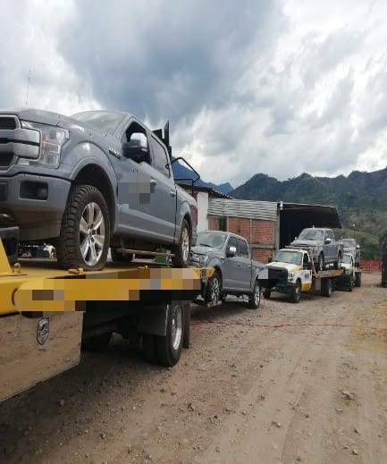 En el lugar se aseguraron nueve vehículos, siete de ellos con logotipos y la leyenda de un grupo de la delincuencia organizada que opera en el estado de Jalisco, un fusil, cuatro granadas, mil 225 cartuchos, 39 casquillos percutidos y un arma larga con aditamento para lanzagranadas.