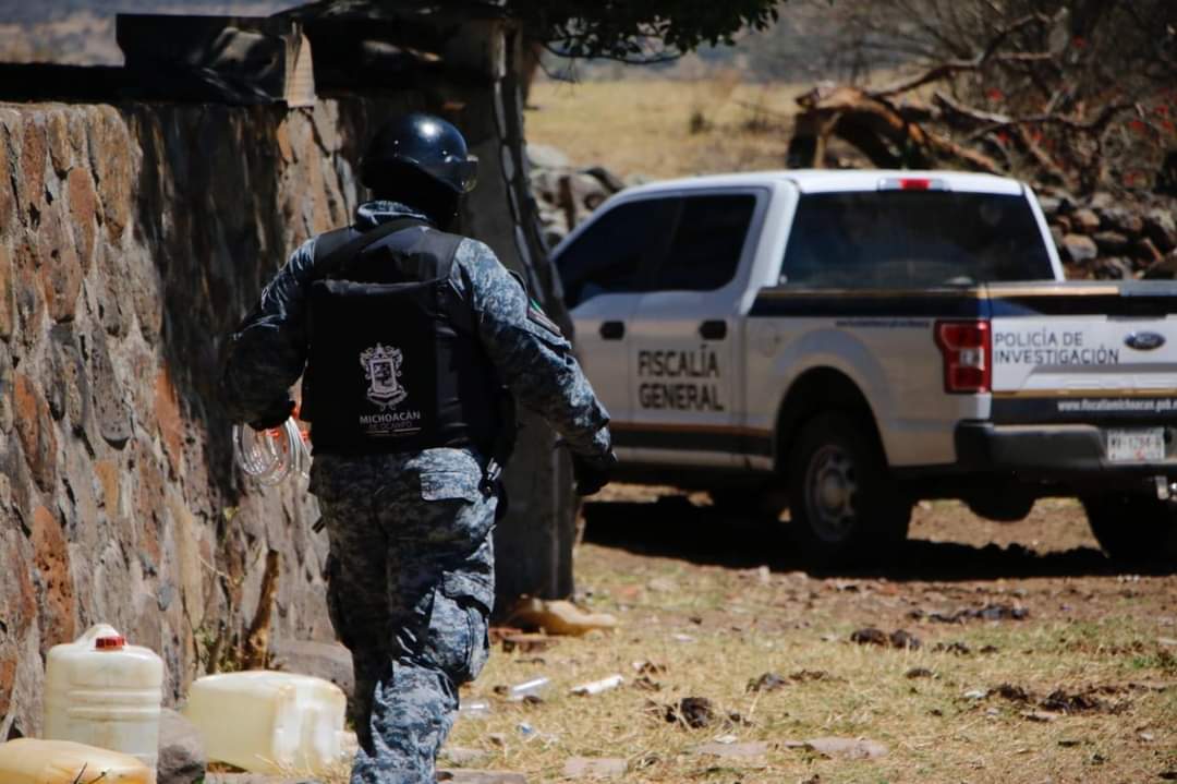 En acción operativa que se lleva a cabo en el municipio de Marcos Castellanos, Fiscalía General del Estado de Michoacán en coordinación con Secretaría de la Defensa Nacional , Guardia Nacional y Secretaría de Seguridad Pública de Michoacán , localizó un inmueble y aseguró material explosivo.