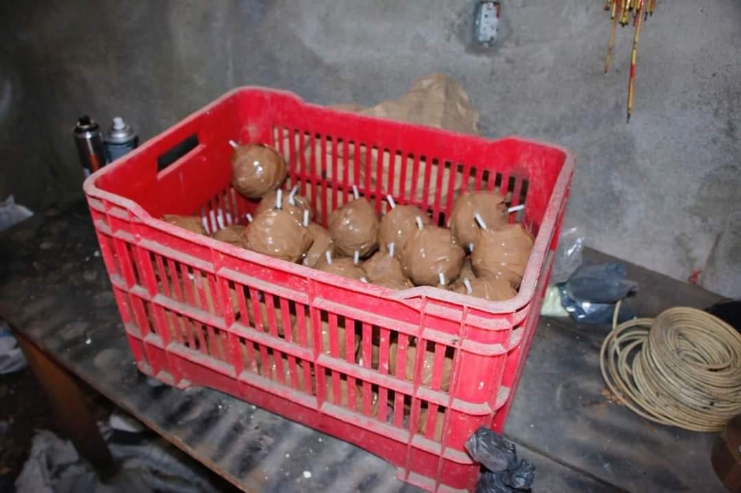 Personal realiza el resguardo del inmueble ubicado en la localidad de La Estancia y aplica el protocolo para el manejo de explosivos consistentes en artefacto de fabricación casera – conocidas como papas- y cilindros con estabilizador de los usados para lanzamiento con drones.