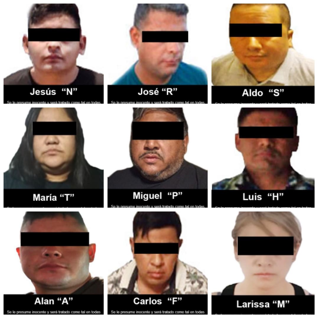 Asimismo, se ejecutó orden de cateo en diversos domicilios ubicados en Ciudad Juárez, Chihuahua, logrando la detención de nueve personas: Aldo “S”, Carlos “F”, Jesús “N”, Luis “H”, José “R”, Alan “A”, Miguel “P”, María del Carmen “T” y Larissa “M”.
