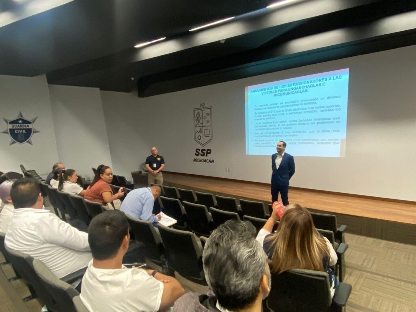 Morelia, Michoacán, a 22 de junio de 2024.- En el marco de las acciones que lleva a cabo para atender y erradicar conductas delictivas que laceran a la sociedad, la Fiscalía General del Estado de Michoacán (FGE), a través de la Unidad Especializada en Combate al Secuestro (UECS), capacitó a personas servidoras públicas del Centro Estatal de Comando, Comunicaciones, Cómputo, Control, Coordinación e Inteligencia (C5i), en materia de extorsión y secuestro virtual.