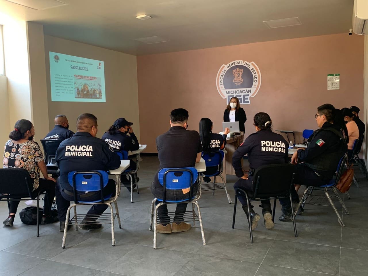 Uruapan, Michoacán, a 22 de abril de 2022.- Para atender la violencia de género de manera pronta y eficaz, es necesaria la acción interinstitucional y la colaboración entre autoridades, para ello, el Centro de Justicia Integral para las Mujeres (CJIM) región Uruapan, ha llevado a cabo reuniones de difusión y capacitación a diferentes dependencias municipales, para dar a conocer el actuar de esta área de la Fiscalía General del Estado de Michoacán (FGE).