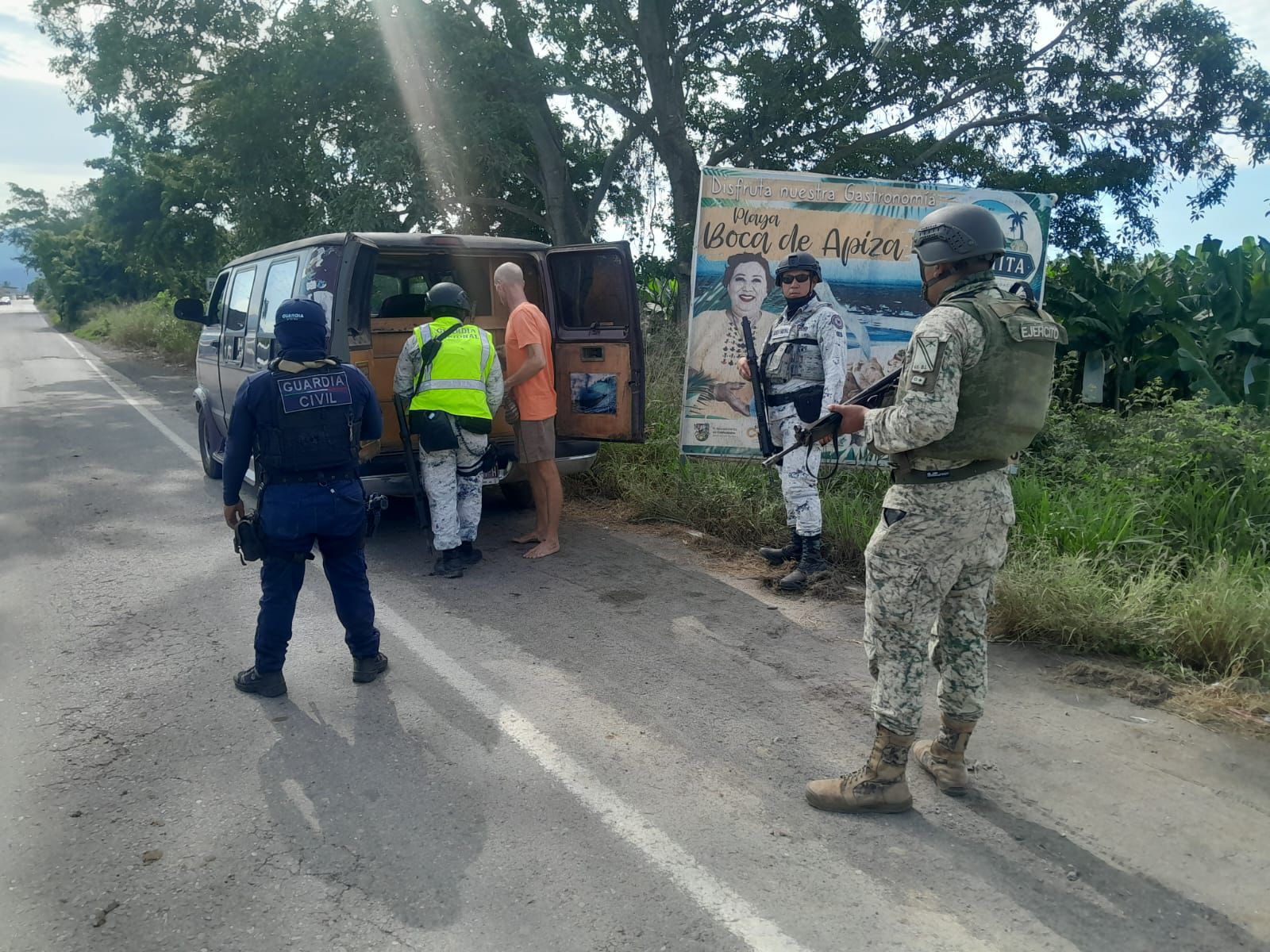 COAHUAYANA, Michoacán (8 de diciembre de 2025).– La Secretaría de Seguridad Pública (SSP) comunicó que, en coordinación con la Secretaría de la Defensa Nacional (Defensa) y la Guardia Nacional (GN), se realizan operativos en el crucero Boca de Apiza, ubicado en el municipio de Coahuayana.