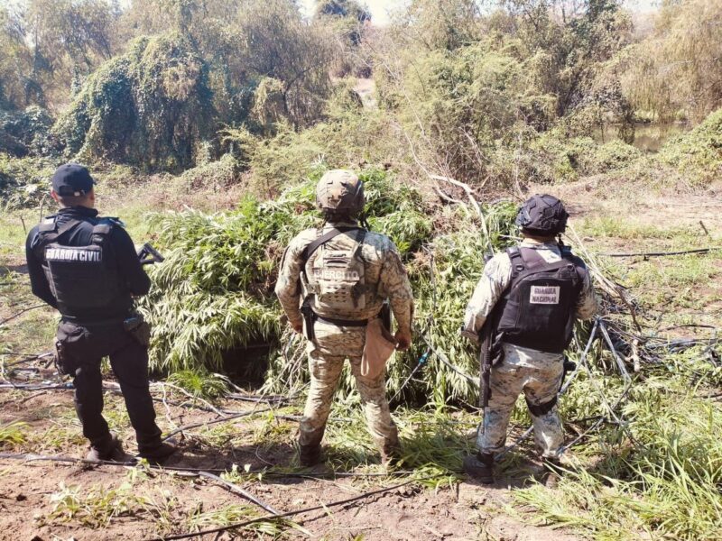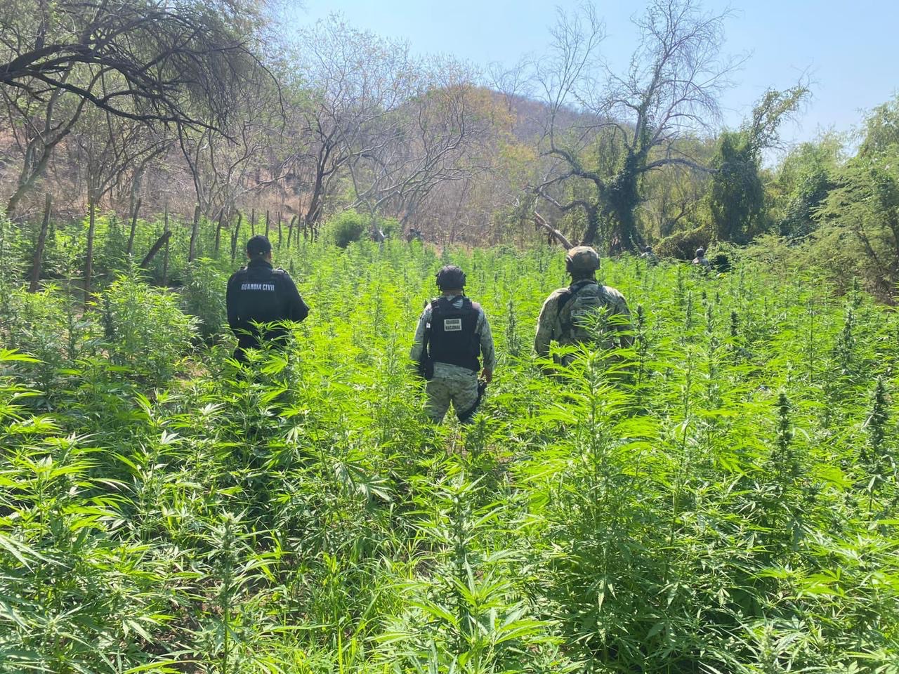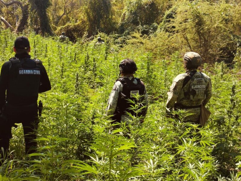 Fuerzas federales y estatales destruyen plantío de marihuana en Buenavista