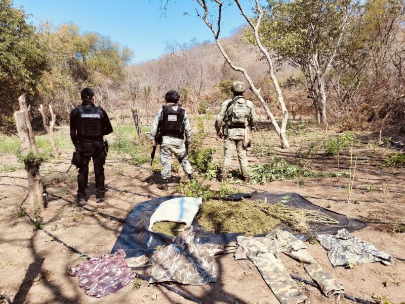 Durante el operativo conjunto, las autoridades reportaron el hallazgo de un predio utilizado para el cultivo del enervante, así como la incineración de aproximadamente 50 kilogramos de hierba seca. Según el reporte oficial, en el sitio también se ubicó un campamento donde se localizaron diversas prendas tácticas, el cual presuntamente era utilizado por grupos de la delincuencia organizada.