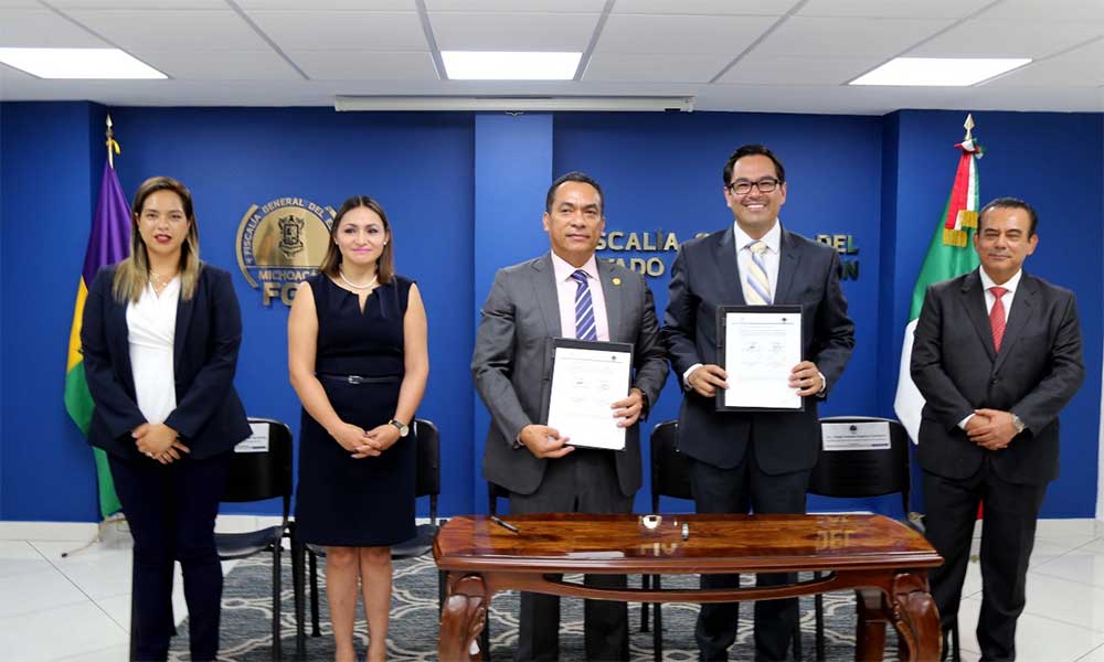 Morelia, Michoacán.- Con el compromiso de garantizar a la ciudadanía que los procesos de procuración de justicia que se lleven a cabo, sean apegados al respeto pleno de los derechos humanos, este día, la Fiscalía General del Estado de Michoacán (FGE), y la Comisión Estatal de los Derechos Humanos (CEDH), signaron un convenio de colaboración.