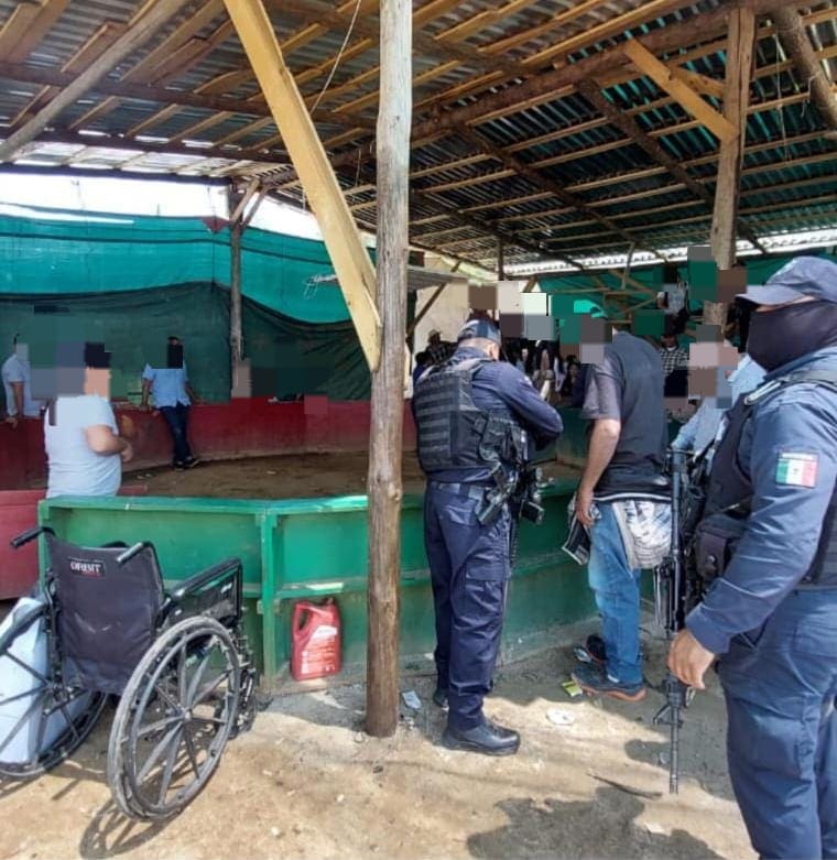 La intervención de la Guardia Civil se llevó a cabo de manera inmediata tras recibir una denuncia ciudadana que alertaba sobre la realización de una jugada de gallos clandestina, por lo cual los agentes del orden se trasladaron de manera inmediata al predio ubicado en la colonia El Mirador del Llano del Ejido, en el lugar, se constató la presencia de un área habilitada con lonas y un ruedo.